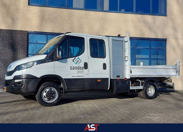 Deze jong gebruikte Iveco Daily 140 dubbelcabine kipper met grote gereedschapskist achter de cabine voldoet perfect aan alle wensen van de klant!
