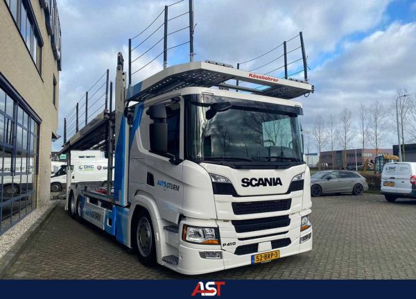 Deze zo goed als nieuwe Scania P410 6×2 met Kassbohrer Citytrans Pro opbouw werd snel gevonden en na in de huisstijl van Auto Sturm gebracht te zijn overhandigd voor transporten tussen de diverse vestigingen en van en naar klanten van Auto Sturm.